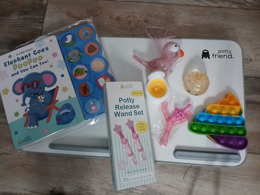 Sticker Chart and Poop Fidgets: Sticker charts help bring excitement and motivation to the process and our poop fidget toys are perfect for helping children maintain interest in the process (and are also needed to prolong their time on the potty which is critically needed at times)